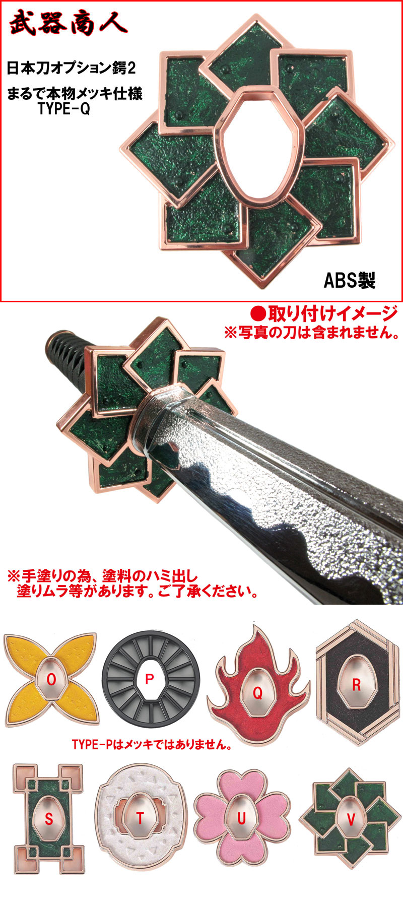 ●【武器商人】製 日本刀(メッキ/PP黒)、脇差(メッキ/PP黒)、幅広短刀(メッキ/PP黒)、木刀(PP黒)、忍者刀(鍔ありPP黒)などに対応するオプション販売の鍔です。対応について詳しくはお問い合わせください。